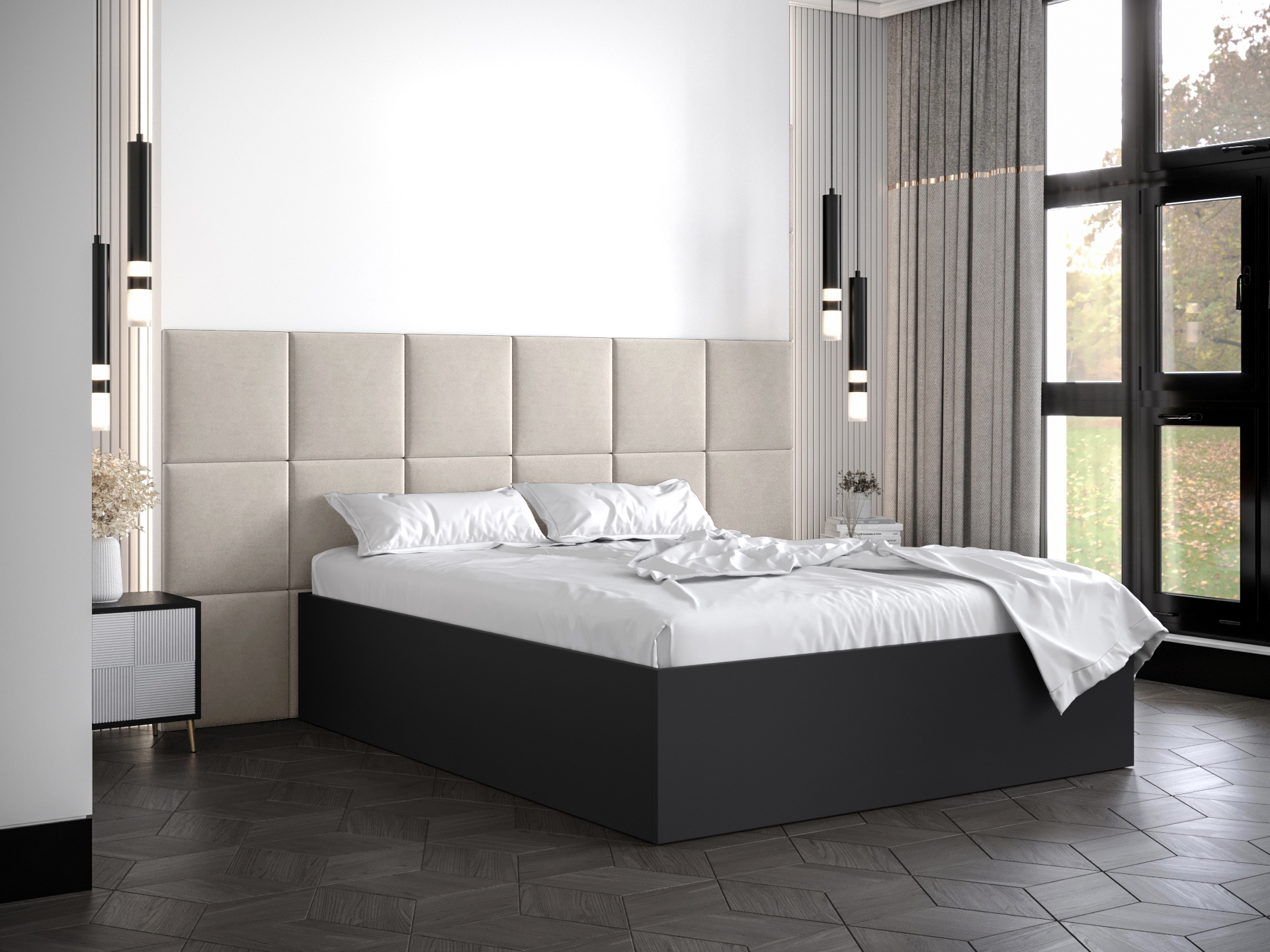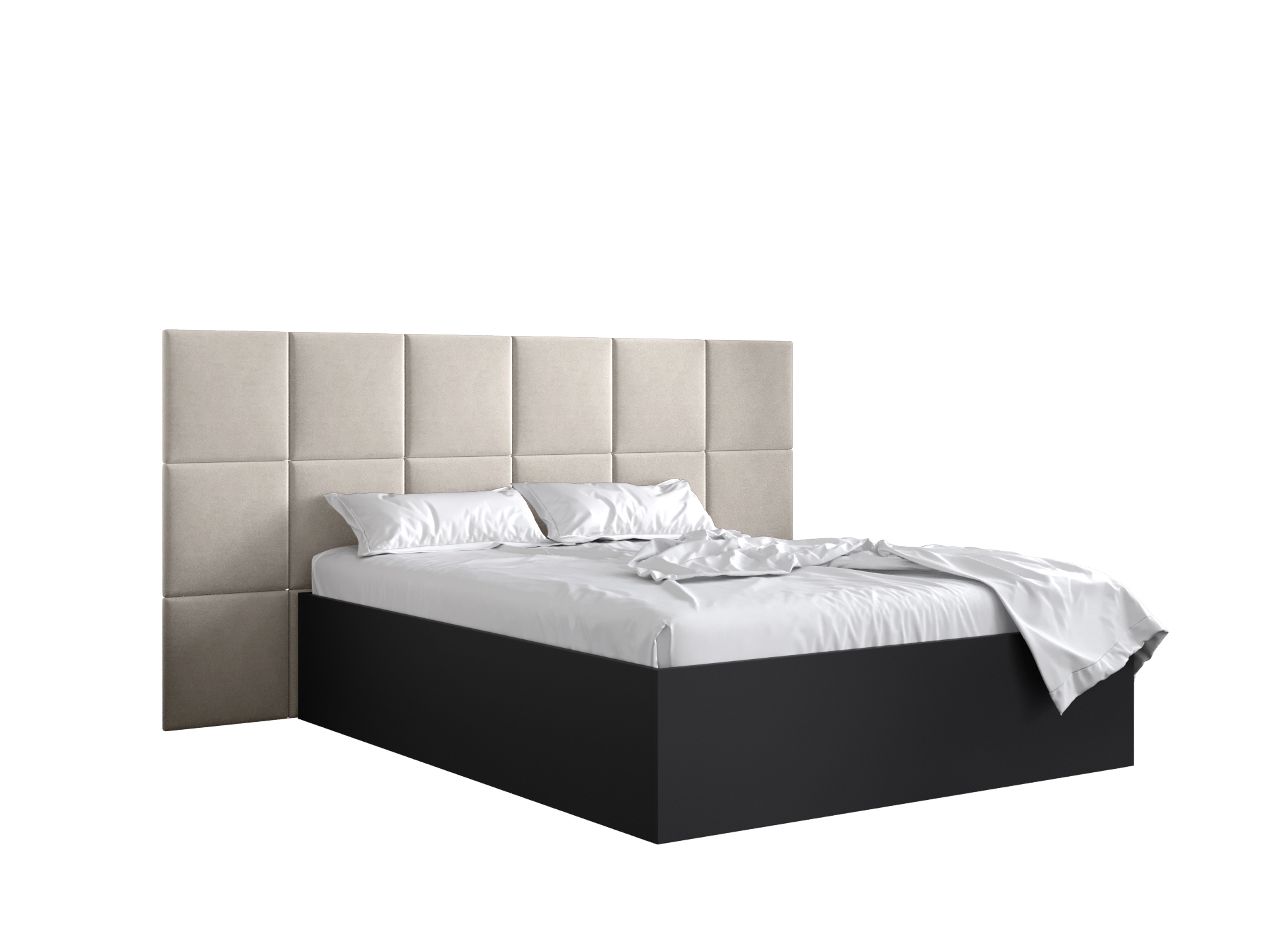 Pat matrimonial cu tăblie tapițată 160 cm Brittany 4 (Negru mat + crem) (cu somieră)