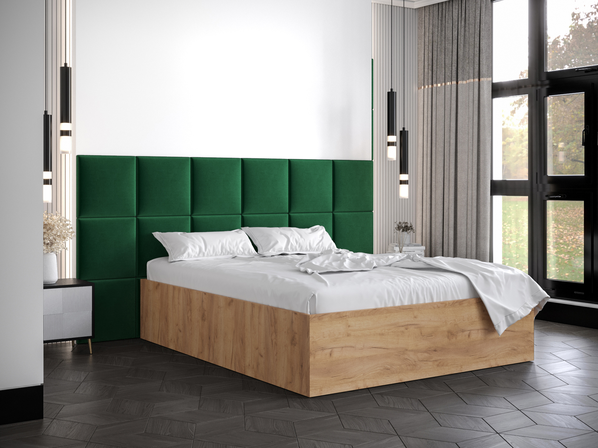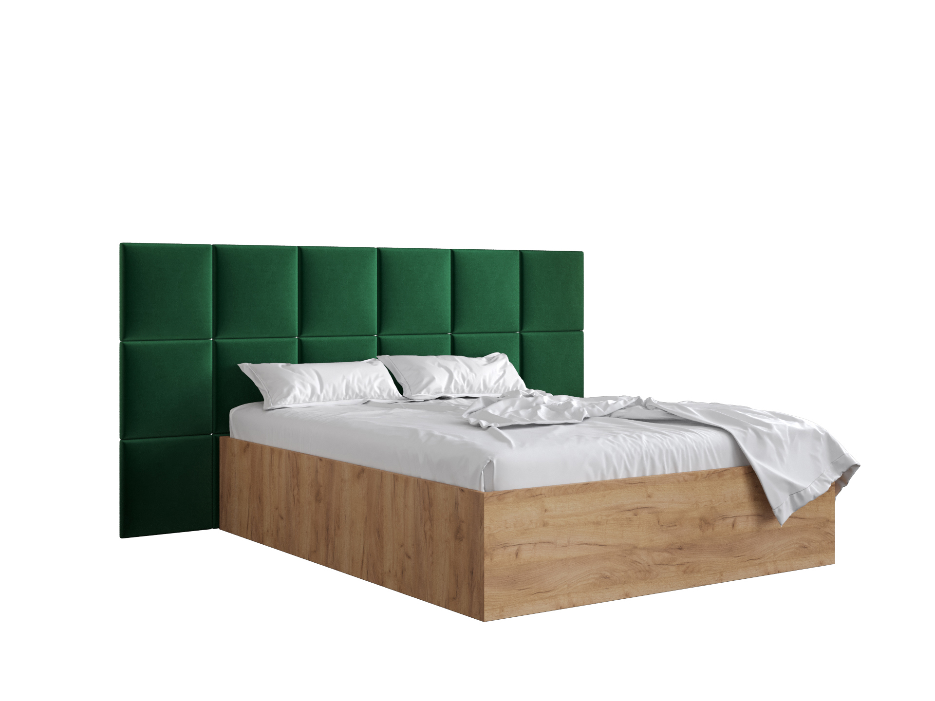 Pat matrimonial cu tăblie tapițată 160 cm Brittany 4 (Stejar craft auriu + verde) (cu somieră)