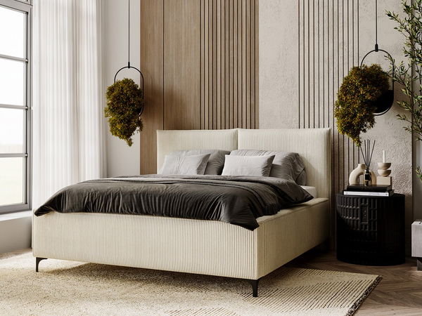 Pat matrimonial 160 cm Camtana (crem + Negru) (cu somieră) (cu sp. depozitare)