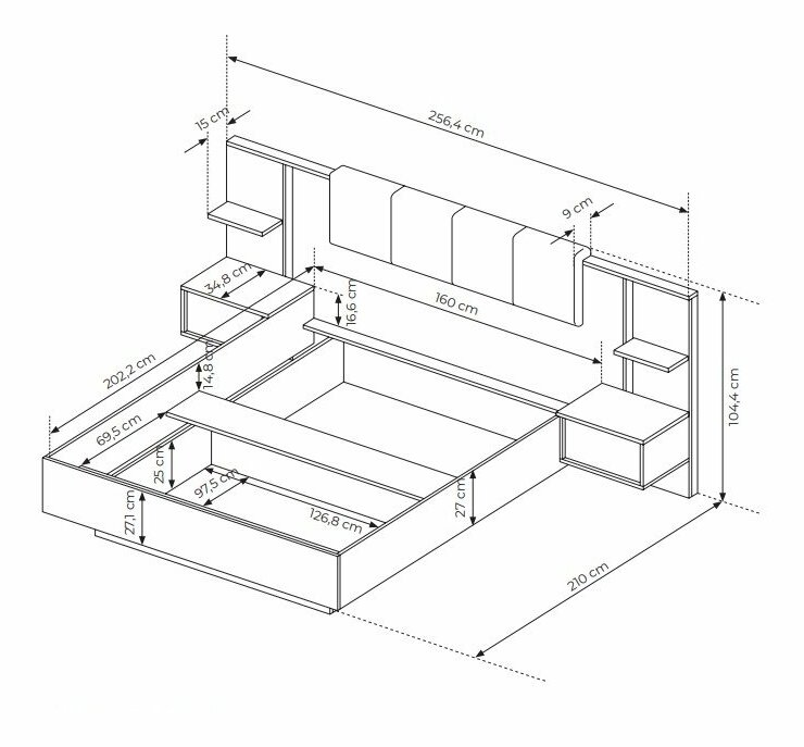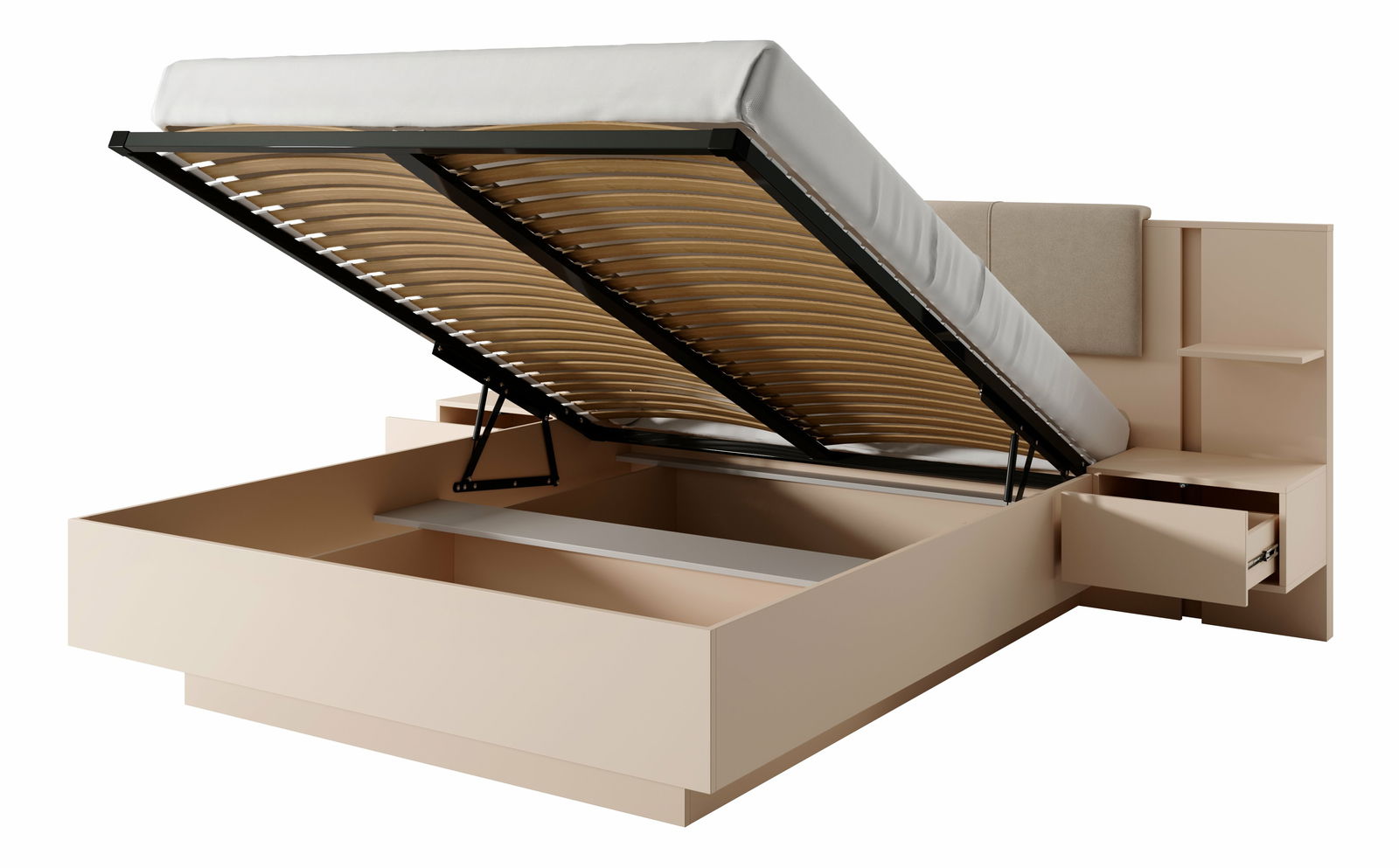 Pat matrimonial 160 cm cu noptiere Danton K (cu sp. depozitare) (fără saltea și somieră) (Bej)