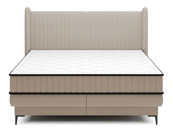 Pat matrimonial 160 cm Dalmo 160 (cu somieră) (cu sp. depozitare) (bej mediu + negru)