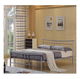 Patul matrimonial Dorado este livrat împreună cu un grilaj de tip lamelar, materialul utilizat este metalul mat de culoare argintie.