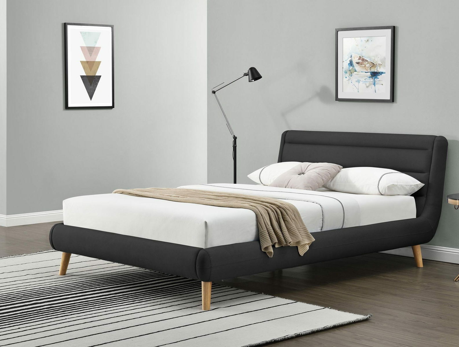 Pat matrimonial 160 cm Edith (Negru) (cu somieră)