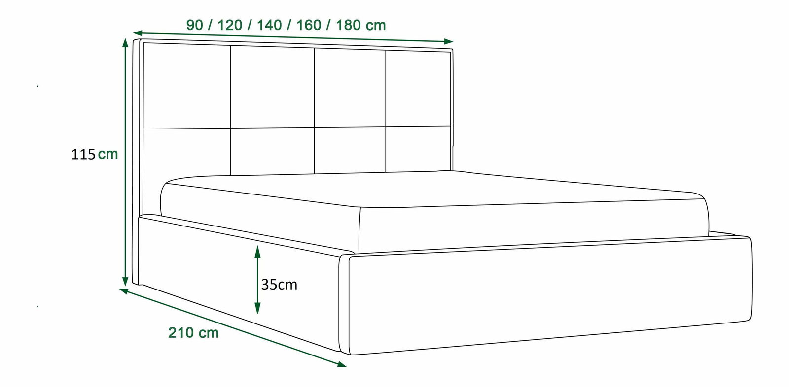 Patul matrimonial din seria Elna este complet tapițat cu material textil și va transforma fiecare dormitor în unul confortabil. În interiorul patului se află somiera și un spațiu de depozitare pentru lenjeria de pat. La alegere dintre mai multe dimensiuni și versiuni color.