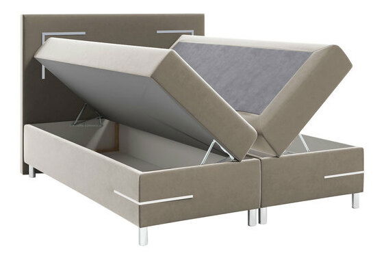 Pat matrimonial 160 cm Frinesa LED (maro deschis) (cu somieră și saltea) (cu sp. depozitare) (cu iluminat LED)
