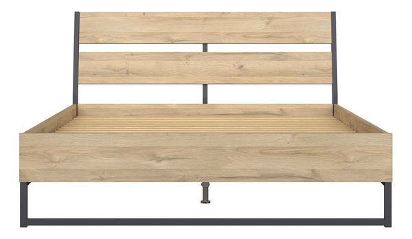 Pat matrimonial interesant, cu bază metalică interesantă. Designul este dominat de un design de culoare plăcută cu un model distinctiv din lemn.