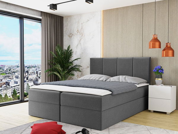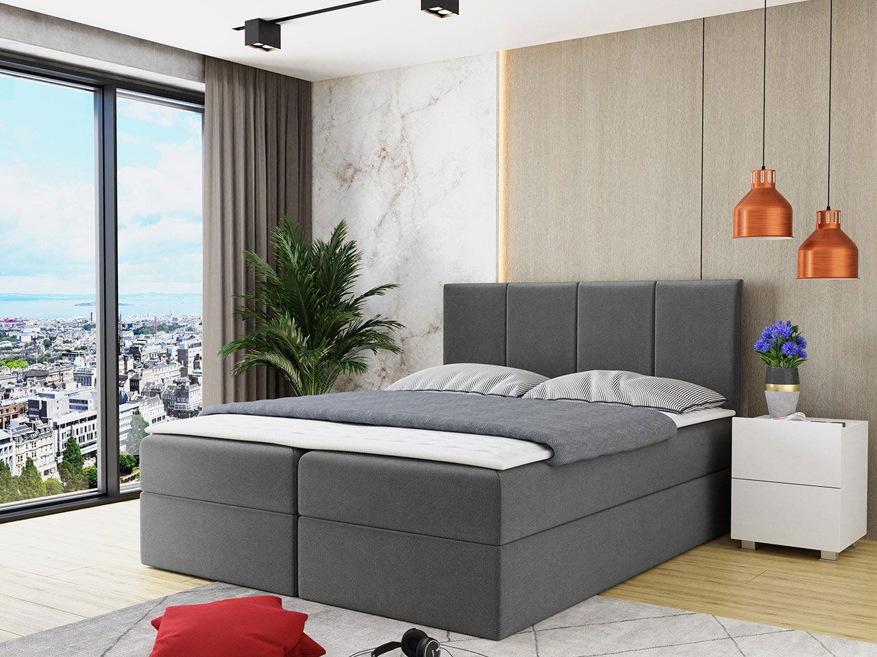 Pat matrimonial 160 cm Gunzy (Gri) (cu somieră și saltea) (cu sp. depozitare)