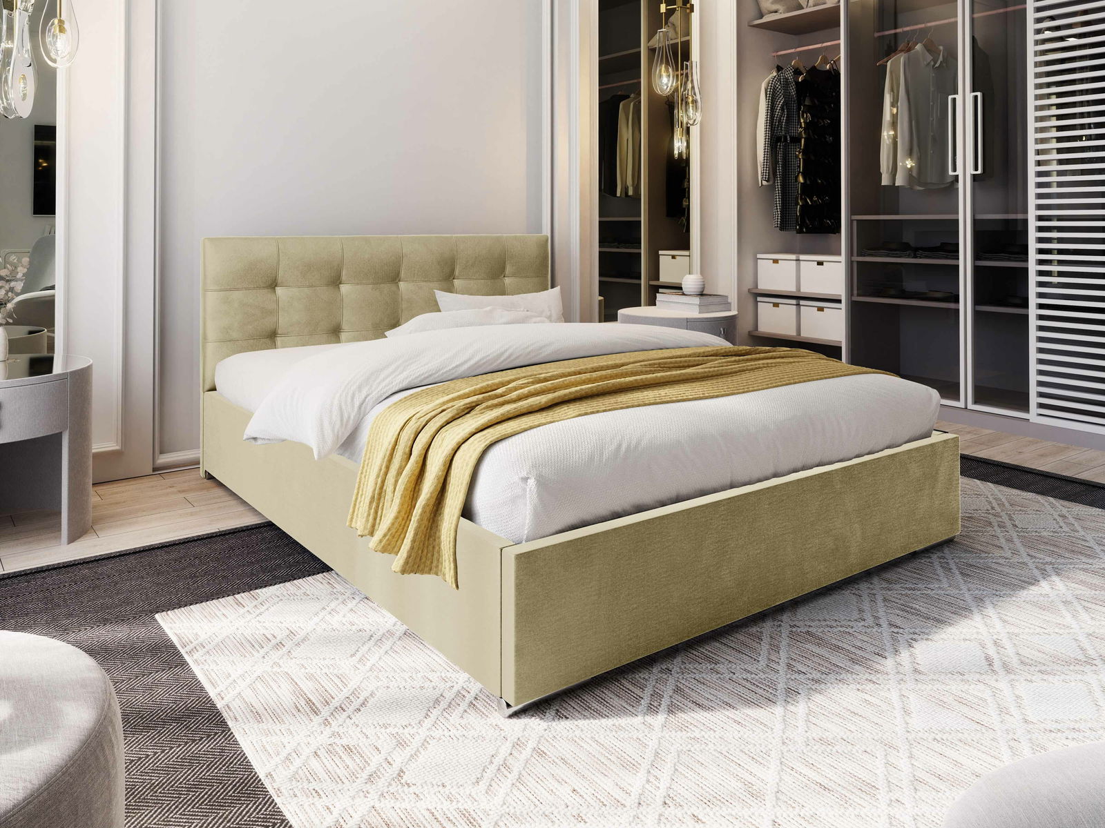 Pat matrimonial 160 cm Hermila (bej) (cu somieră și sp. depozitare)