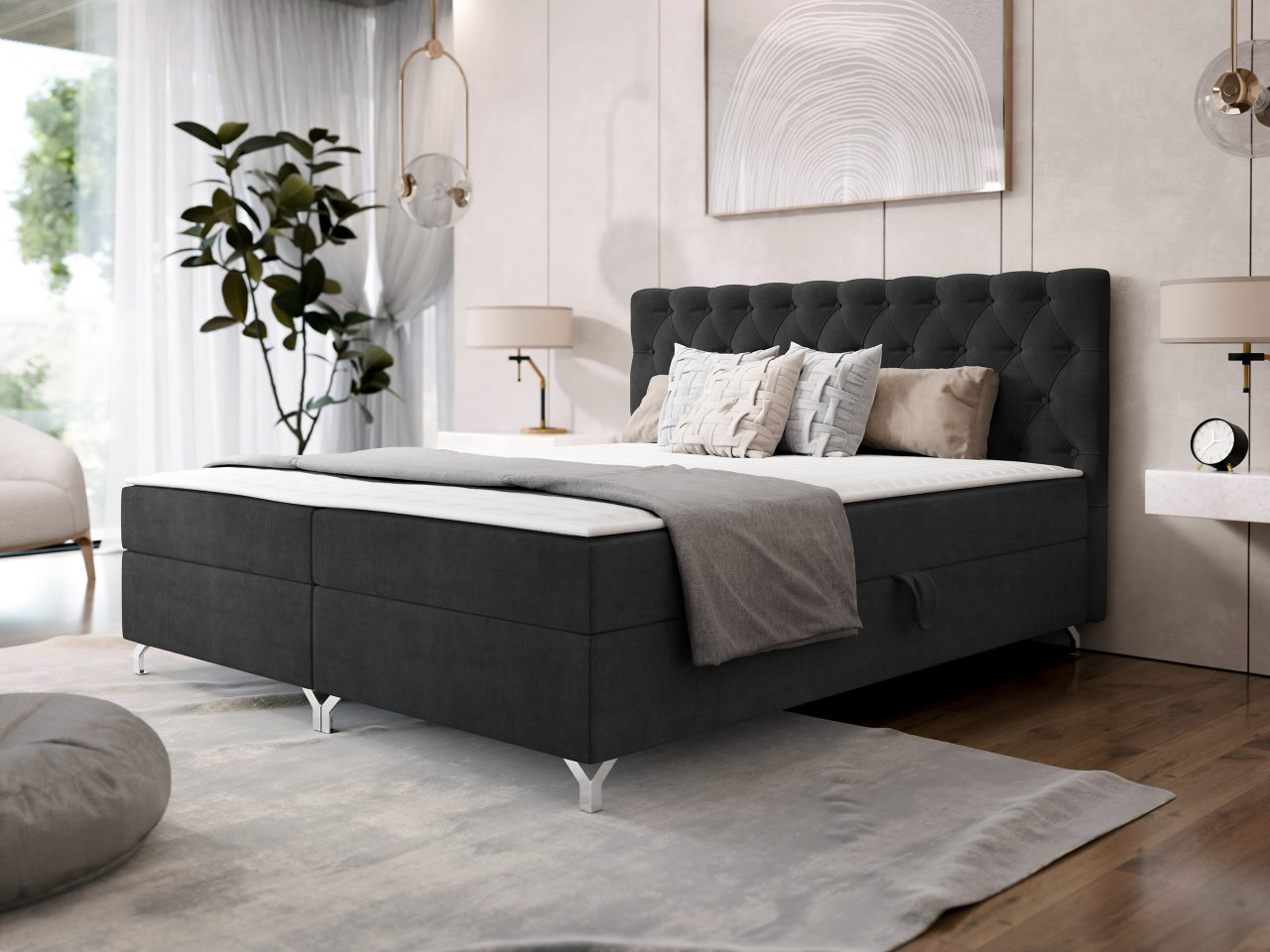 Pat matrimonial 160 cm Jenaks 2 (Gri) (cu somieră și saltea) (cu sp. depozitare)