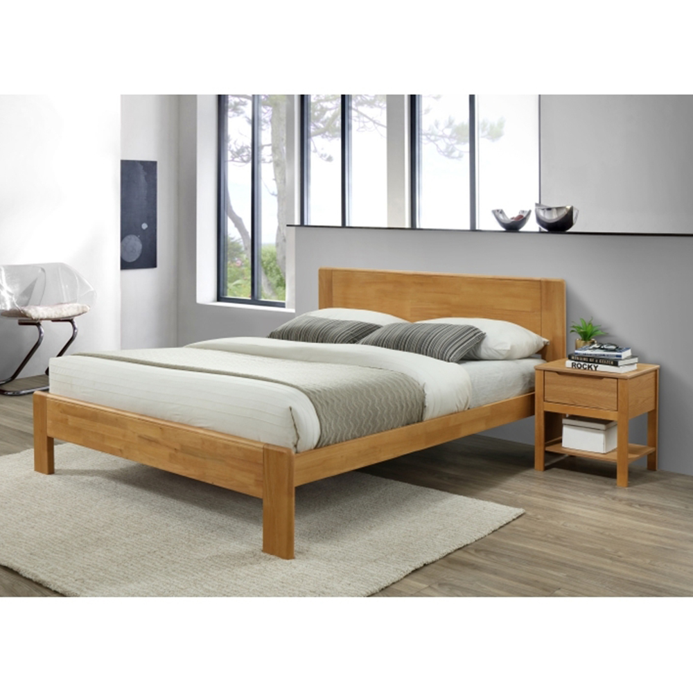 Pat unic, spațios, care cu siguranță aparține într-un dormitor frumos. Este realizat din lemn masiv în versiunea color de stejar. Încorporați stilul clasic al patului într-un dormitor modern sau tradițional și creați efectul dorit de confort și relaxare, care nu trebuie să lipsească din dormitor. Kaboto este livrat cu grilaj de lemn, fără saltea.