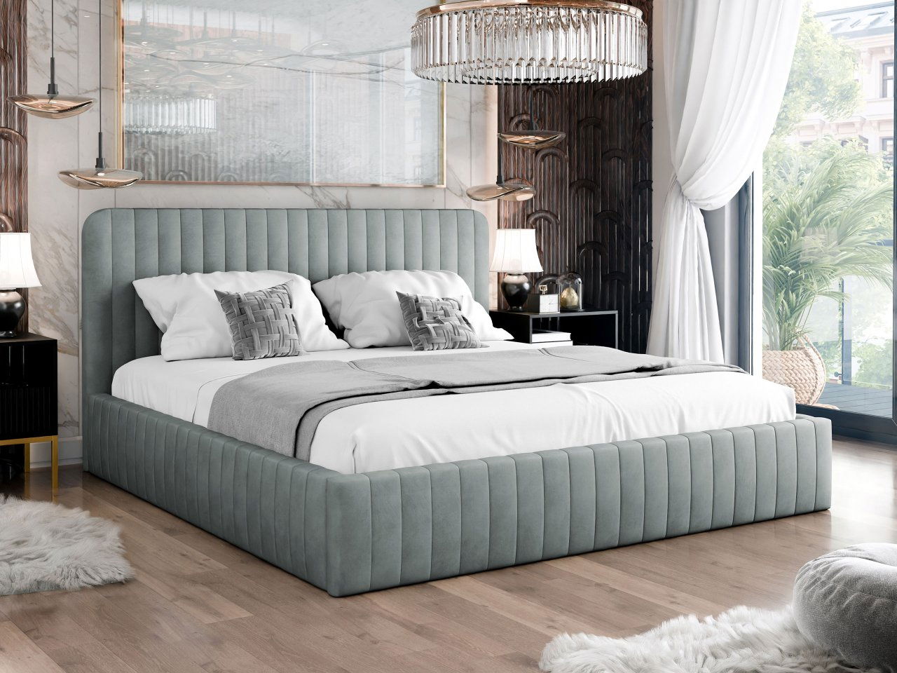 Pat matrimonial 160 cm Lentoa (verde deschis) (cu somieră) (cu sp. depozitare)
