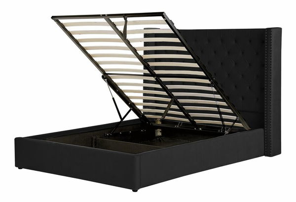 Pat matrimonial 160 cm Lubbka (Negru) (cu somieră) (cu sp. depozitare)