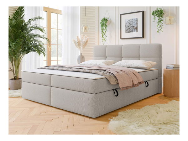 Pat matrimonial 160 cm Mejaso (maro deschis) (cu somieră și saltea) (cu sp. depozitare)