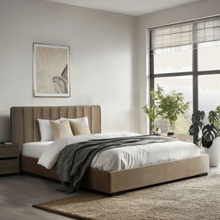 Pat matrimonial 160 cm Merecida (bej) (cu somieră) (cu sp. depozitare)