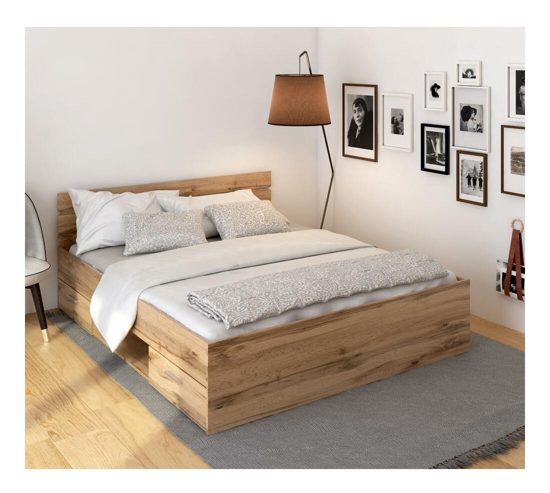 Pat matrimonial 160 cm Michigin (stejar wotan) (cu sp. depozitare) *resigilat