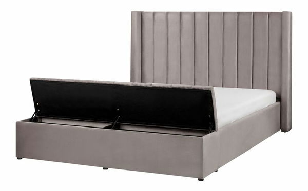 Pat matrimonial 160 cm NAIROBI (textil) (gri) (cu somieră)