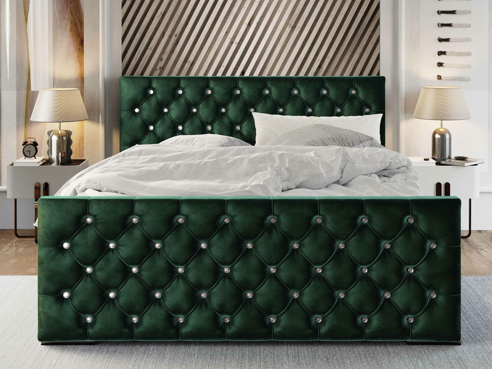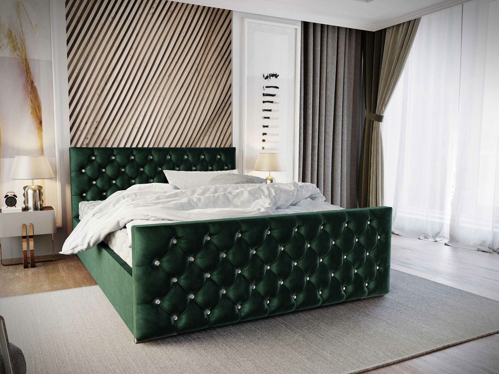 Pat matrimonial 160 cm Quintin (verde închis) (cu somieră și sp. depozitare)