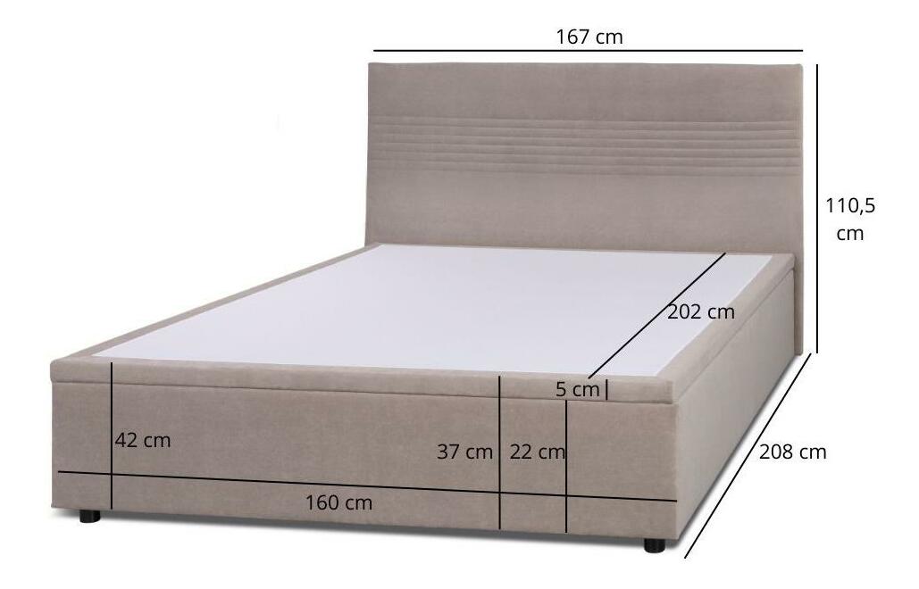 Pat matrimonial 160 cm Reiteradas (bej) (cu somieră) (cu sp. depozitare)
