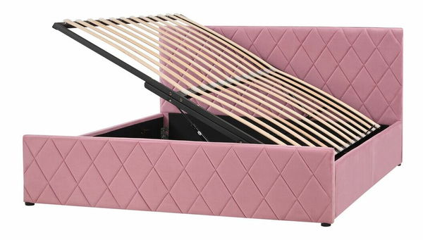 Pat matrimonial 160 cm Rhett (roz) (cu somieră și sp. depozitare)