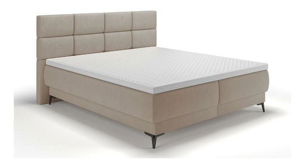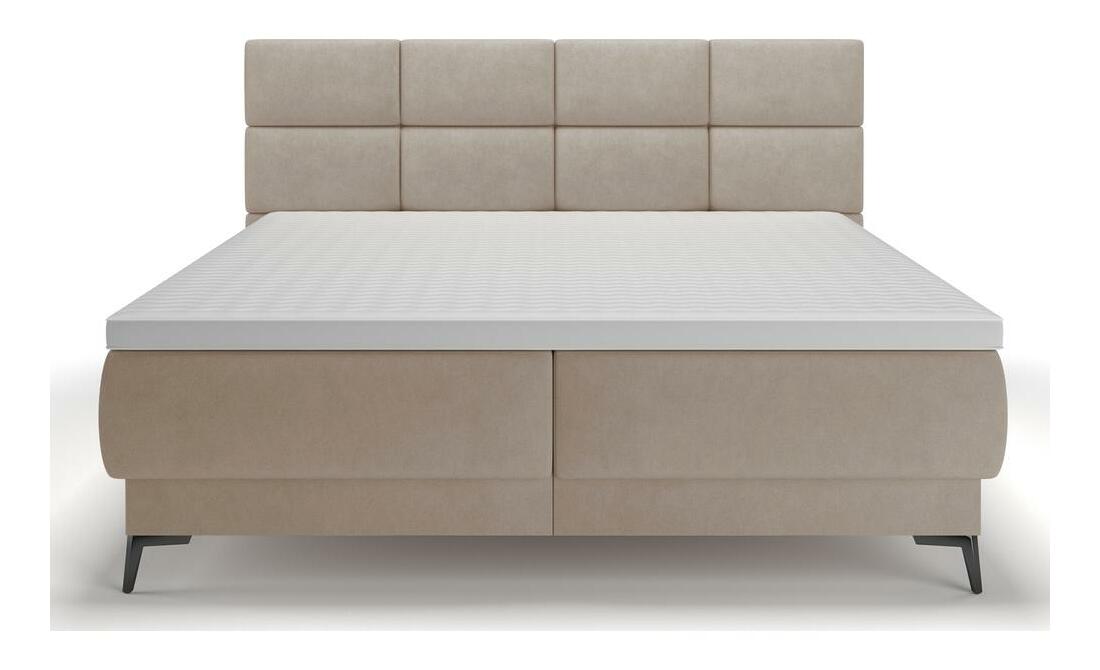 Pat matrimonial 160 cm Riviera 160 (cu somieră și saltea) (cu sp. depozitare) (bej mediu + negru)