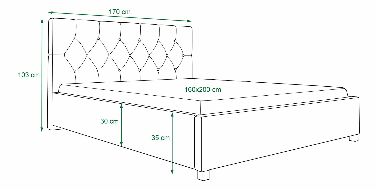 Pat matrimonial din gama Sylvie, din piele ecologică, cu tăblie înaltă. În interiorul patului veți găsi somiera și un spațiu de depozitare pentru lenjeria de pat. La alegere dintre mai multe dimensiuni și variante color.