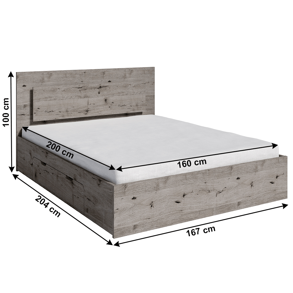 Pat matrimonial 160 cm Talago (stejar welington) (și sp. depozitare și iluminat LED)