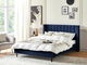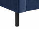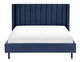 Pat elegant cu design modern și spătar înalt. Forma dreptunghiulară a patului poate părea clasică la prima vedere, însă datorită cusăturilor verticale de pe tăblie, oferă un aspect modern și elegant. Pat este tapițat în întregime cu tapițerie de catifea de culoare albastru închis, ceea ce îi conferă un aspect sofisticat. Picioarele mici și discrete garantează stabilitatea și rezistența întregului cadru.