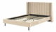 Pat elegant cu design modern și spătar înalt. Forma dreptunghiulară a patului poate părea clasică la prima vedere, însă datorită cusăturilor verticale de pe tăblie, oferă un aspect modern și elegant. Pat este tapițat în întregime cu tapițerie de catifea de culoare bej, ceea ce îi conferă un aspect sofisticat. Picioarele mici și discrete garantează stabilitatea și rezistența întregului cadru.