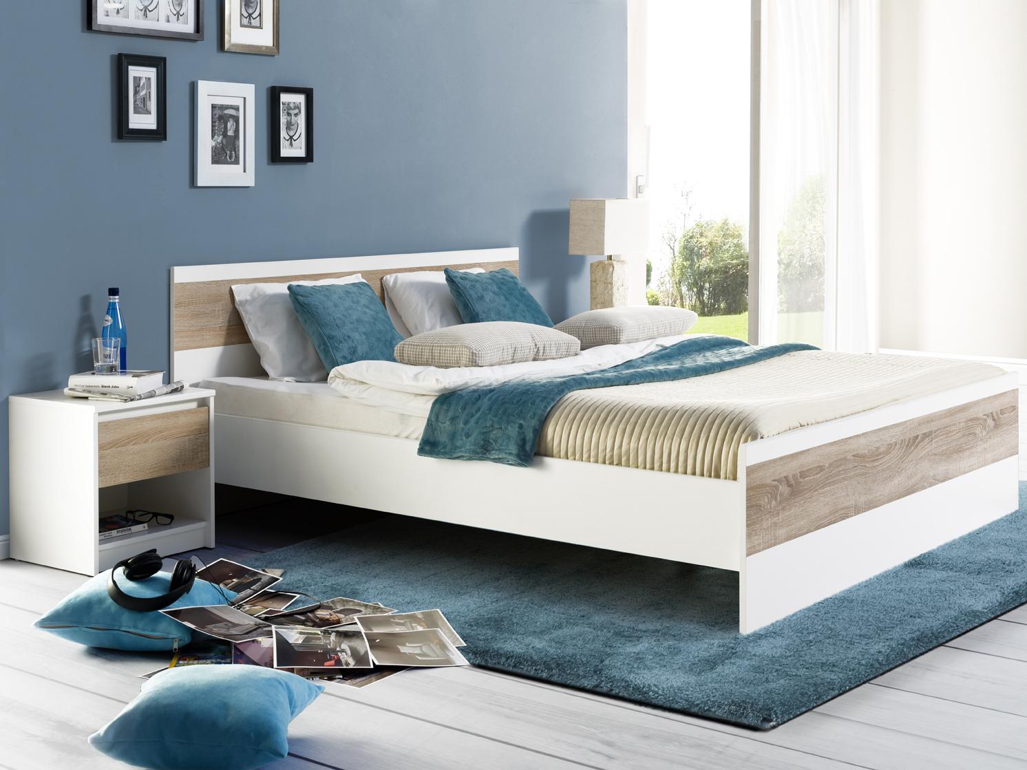 Pat matrimonial 160 cm Wanta 03 (Alb + stejar sonoma)