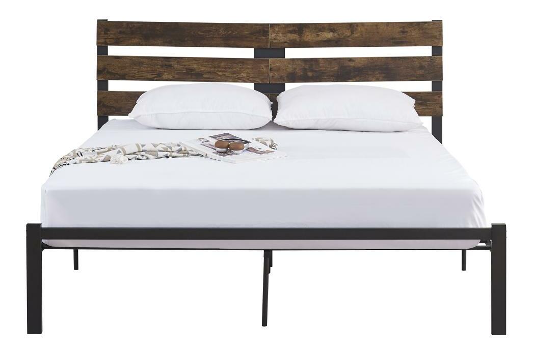 Pat matrimonial 180 cm Acabarian (negru + stejar rustikal) (cu somieră)