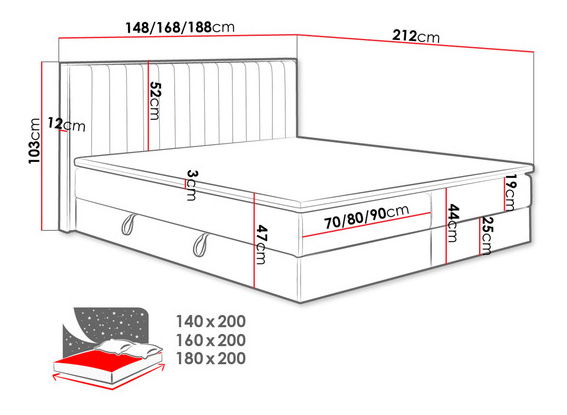 Pat matrimonial 180 cm Bibione (stejar craft auriu + crem)
