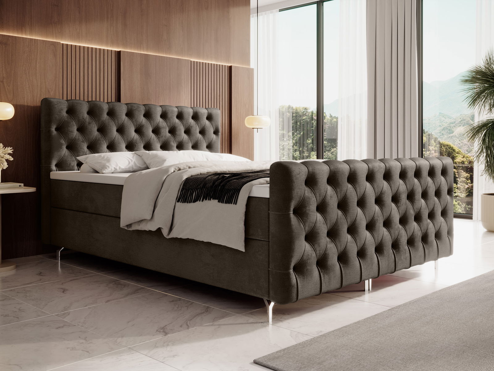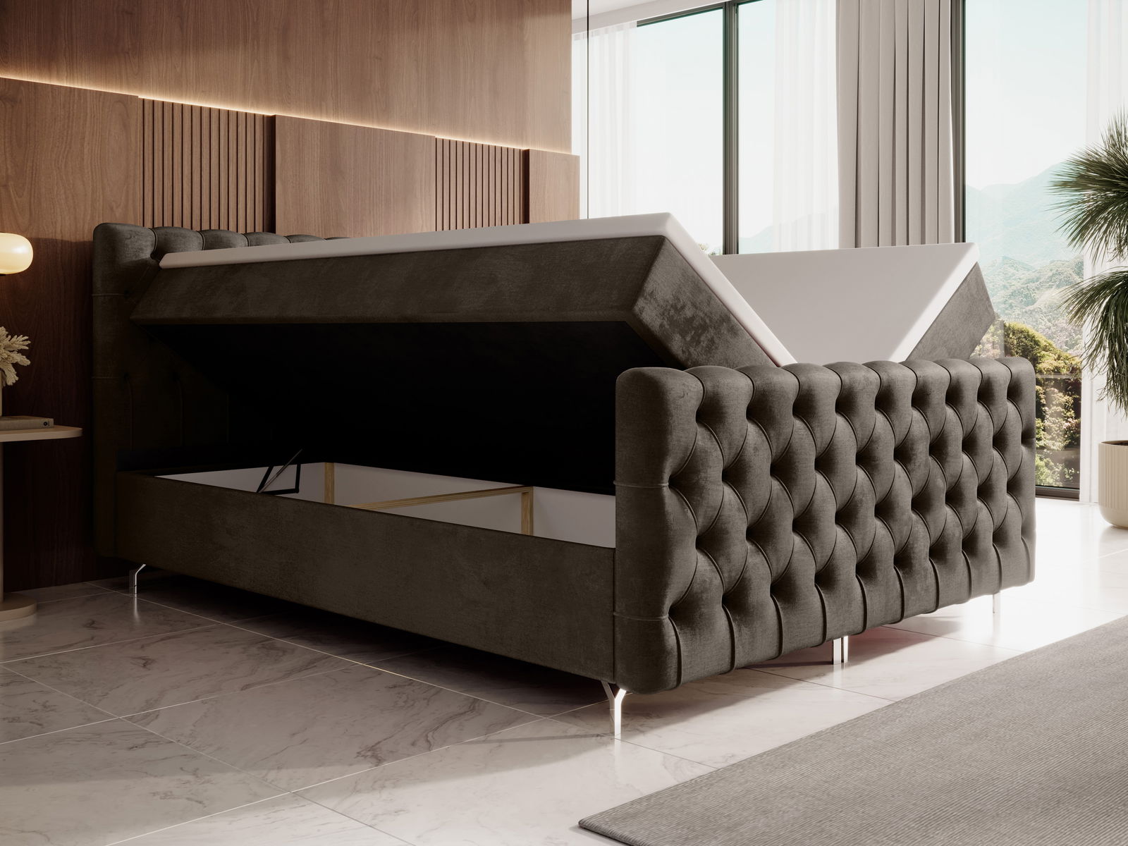 Pat matrimonial 180 cm Clinton Bonell (Maro) (cu somieră, cu sp. depozitare)
