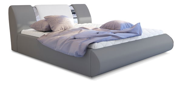 Pat matrimonial 180 cm Fabio (gri deschis + alb) (cu somieră și sp. depozitare)