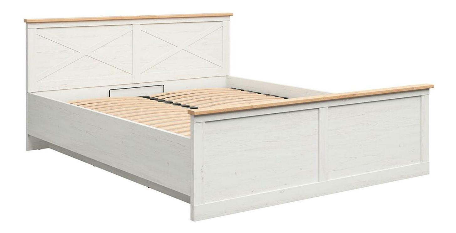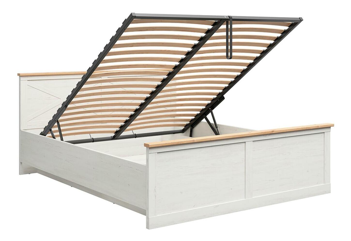 Pat matrimonial 180 cm Frija 4 (pin andersen alb + stejar artisan) (cu somieră) (cu sp. depozitare)