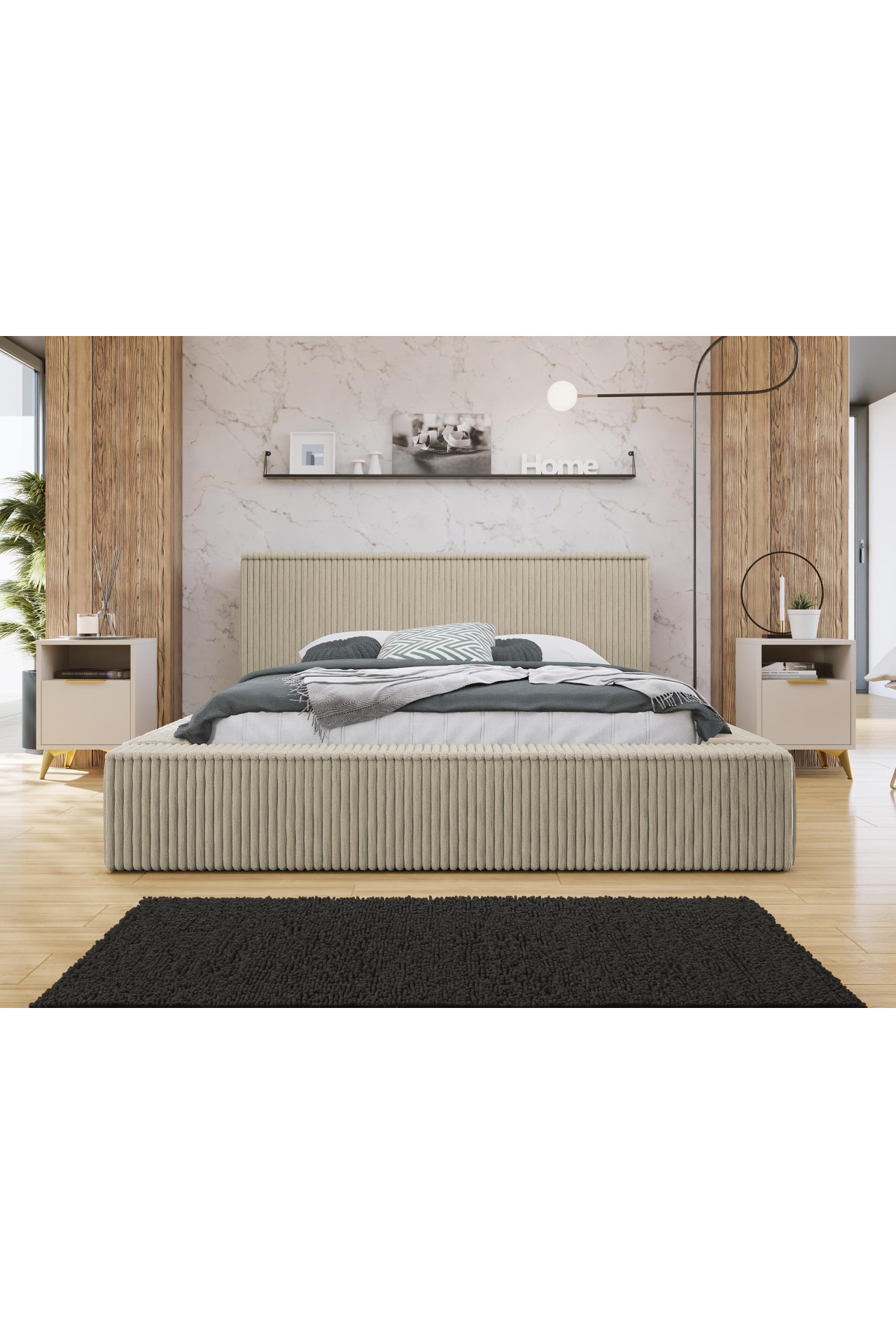 Pat matrimonial 180 cm Gretty S (Bej) (cu somieră) (cu sp. depozitare)