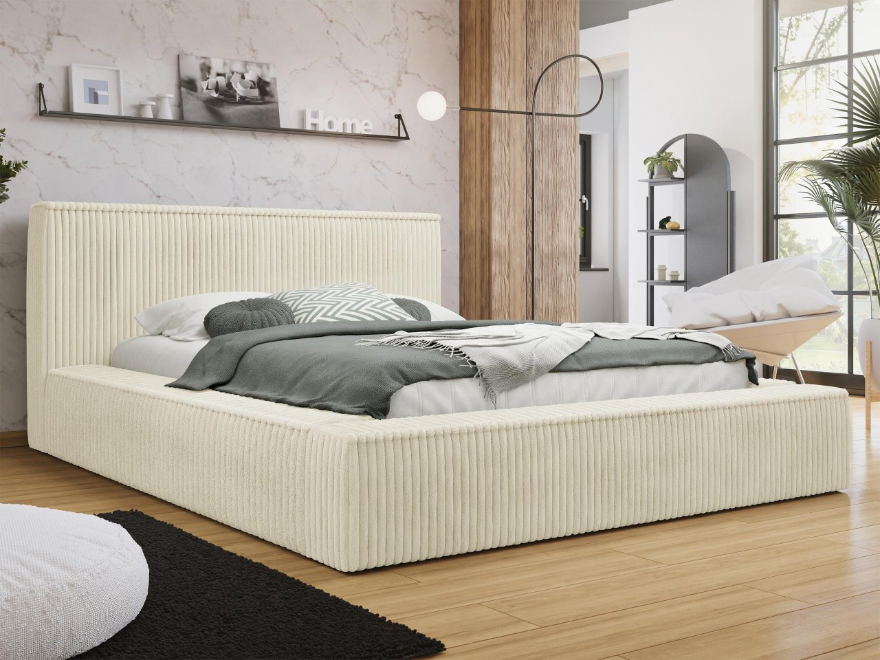 Pat matrimonial 180 cm Gretty S (crem) (cu somieră) (cu sp. depozitare)