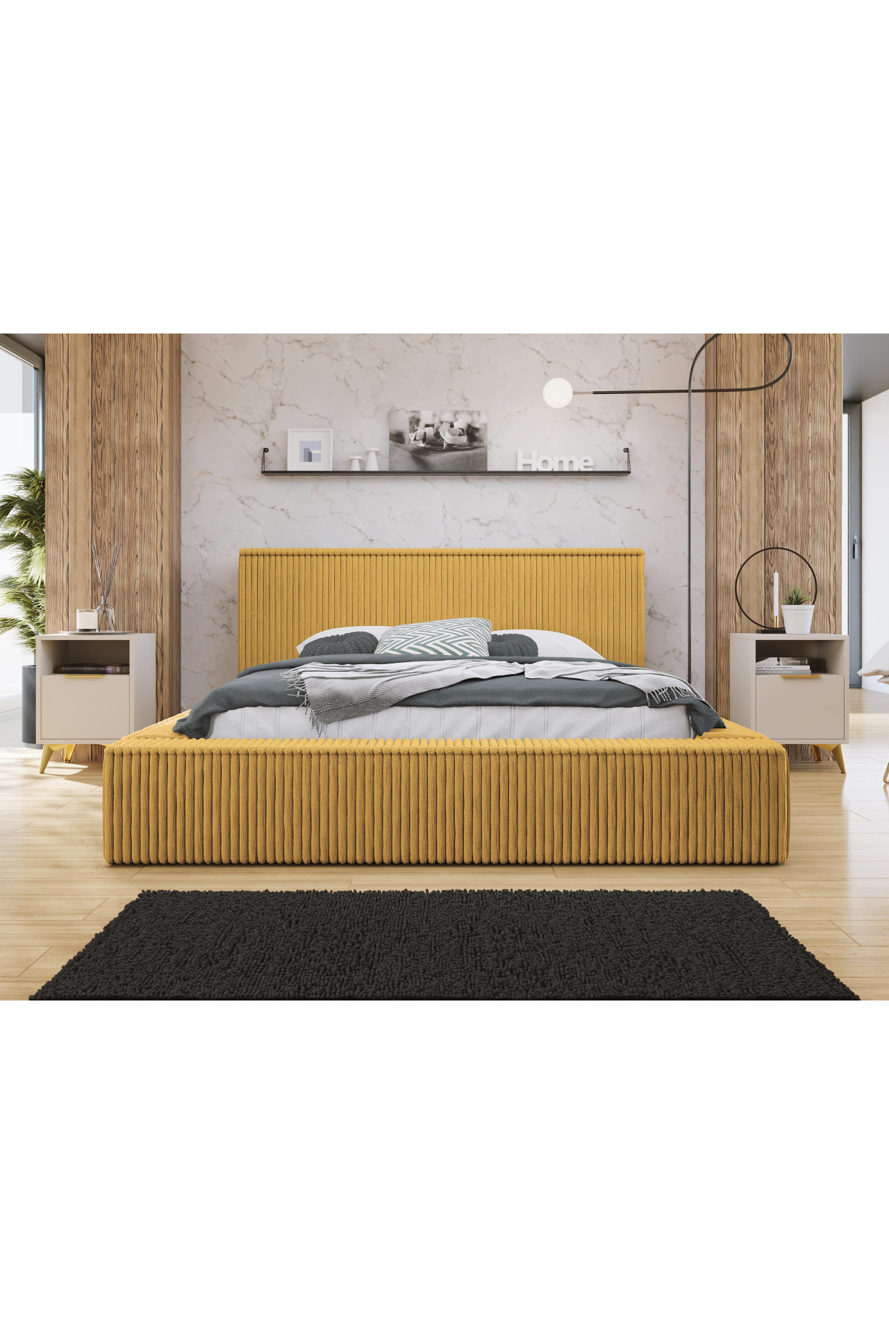 Pat matrimonial 180 cm Gretty S (muștar) (cu somieră) (cu sp. depozitare)