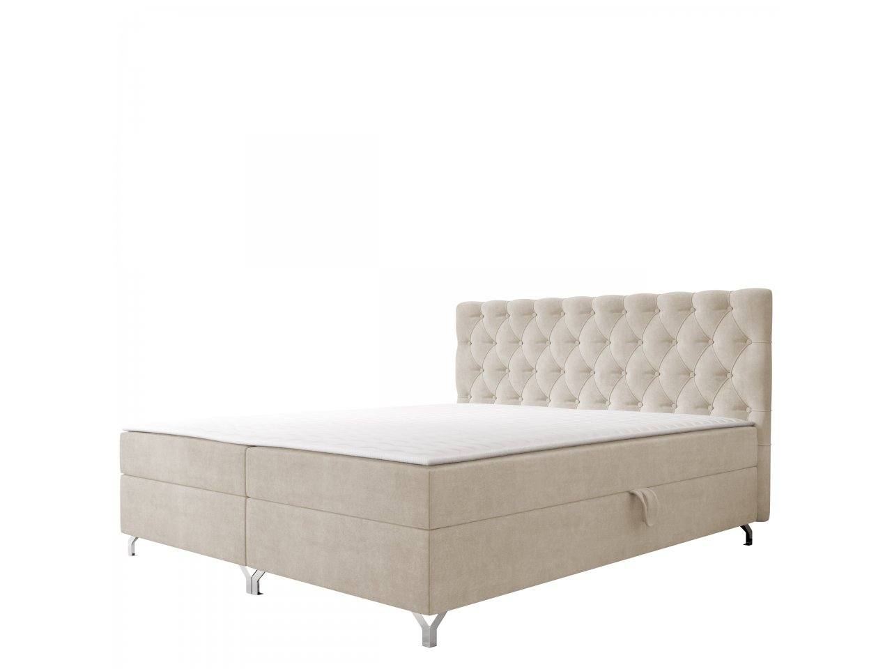 Pat matrimonial 180 cm Jenaks 2 (Bej) (cu somieră și saltea) (cu sp. depozitare)