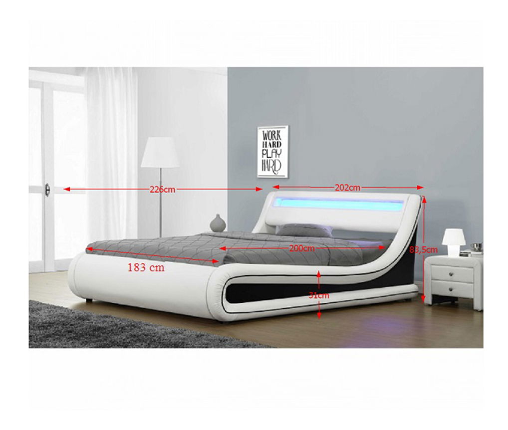 Pat matrimonial modern, cu somieră rabatabilă și spațiu de depozitare, practic și cochet, iluminarea cu LED-uri RGB adăugând spațiului armonie și confort. Patul este tapițat cu piele ecologică, culoare alb-negru.