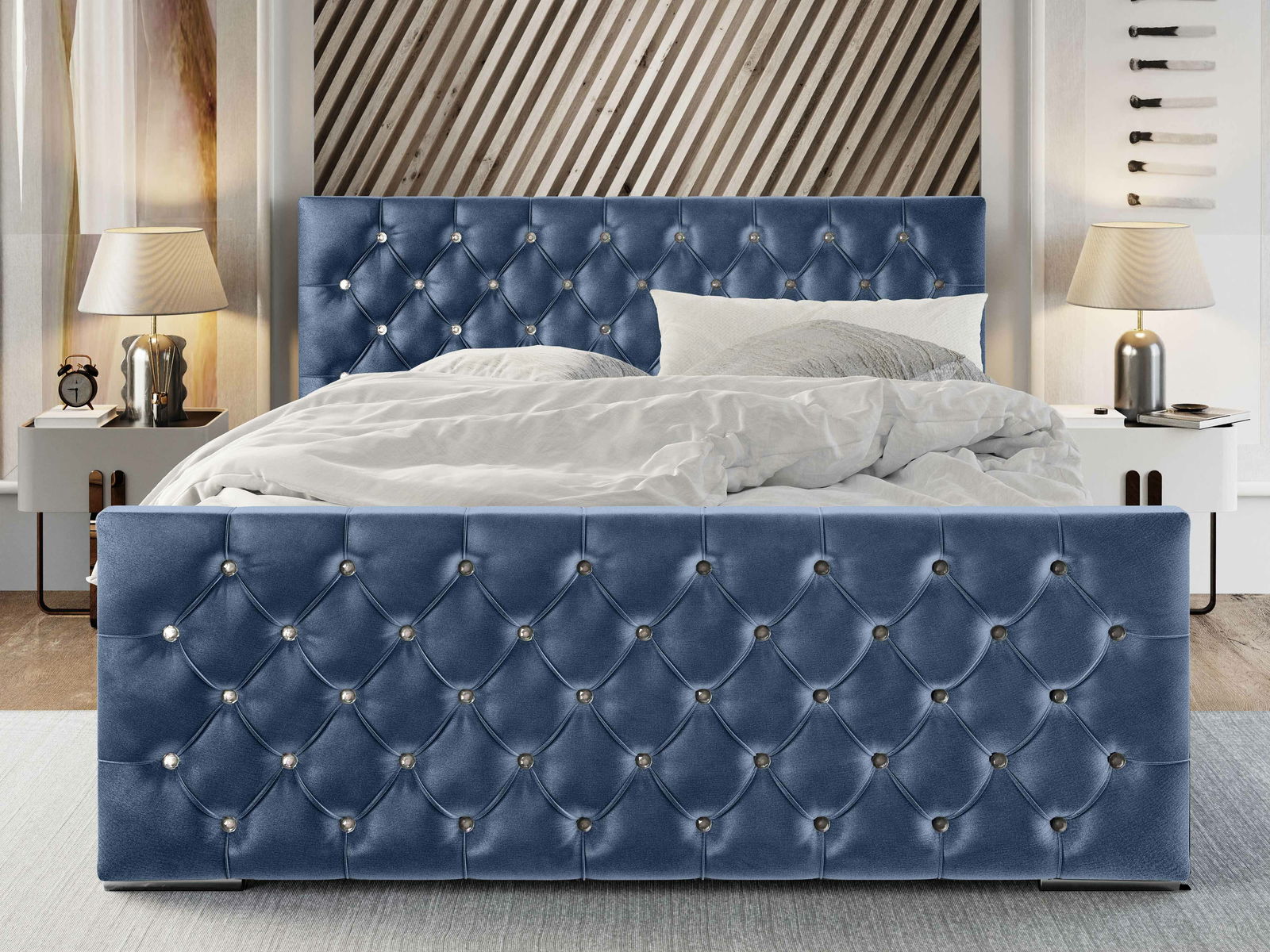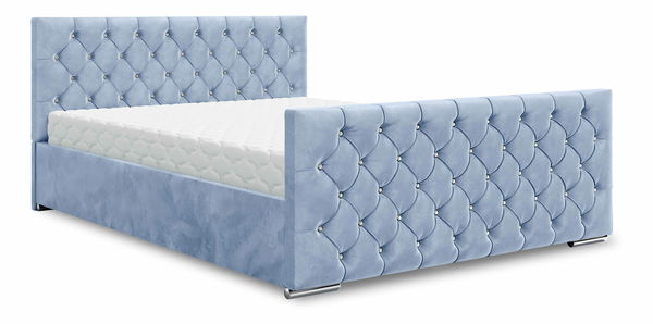 Pat matrimonial 180 cm Quintin (albastru deschis) (cu somieră și sp. depozitare)
