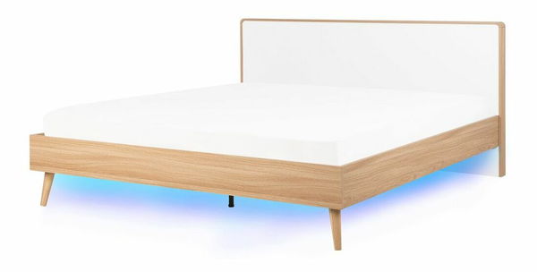 Pat matrimonial 180 cm SERVI (cu somieră și iluminat LED) (lemn deschis)