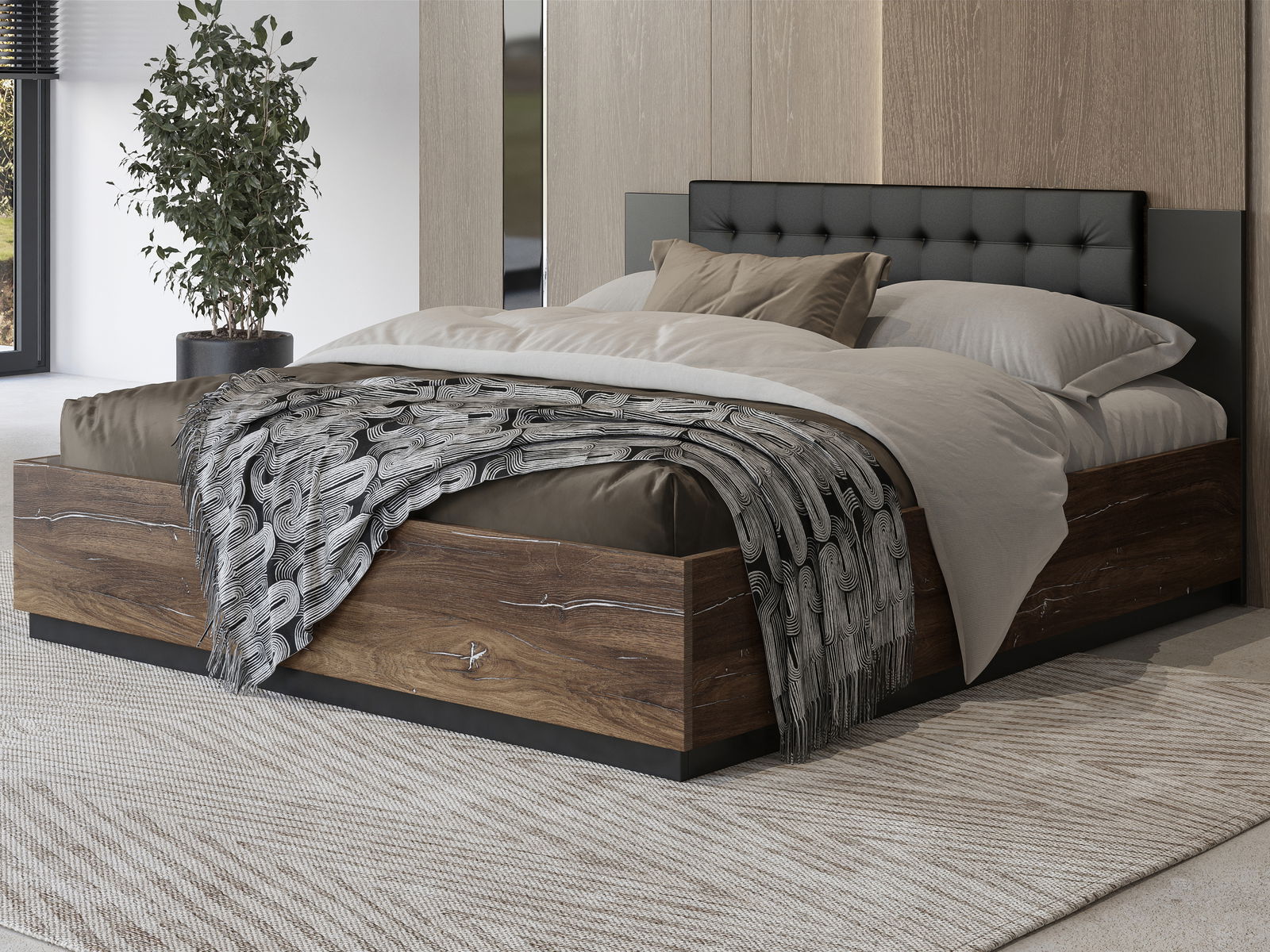 Pat matrimonial 180 cm Signat Typ 32 (Negru + Stejar flagstaff + fir argintiu)