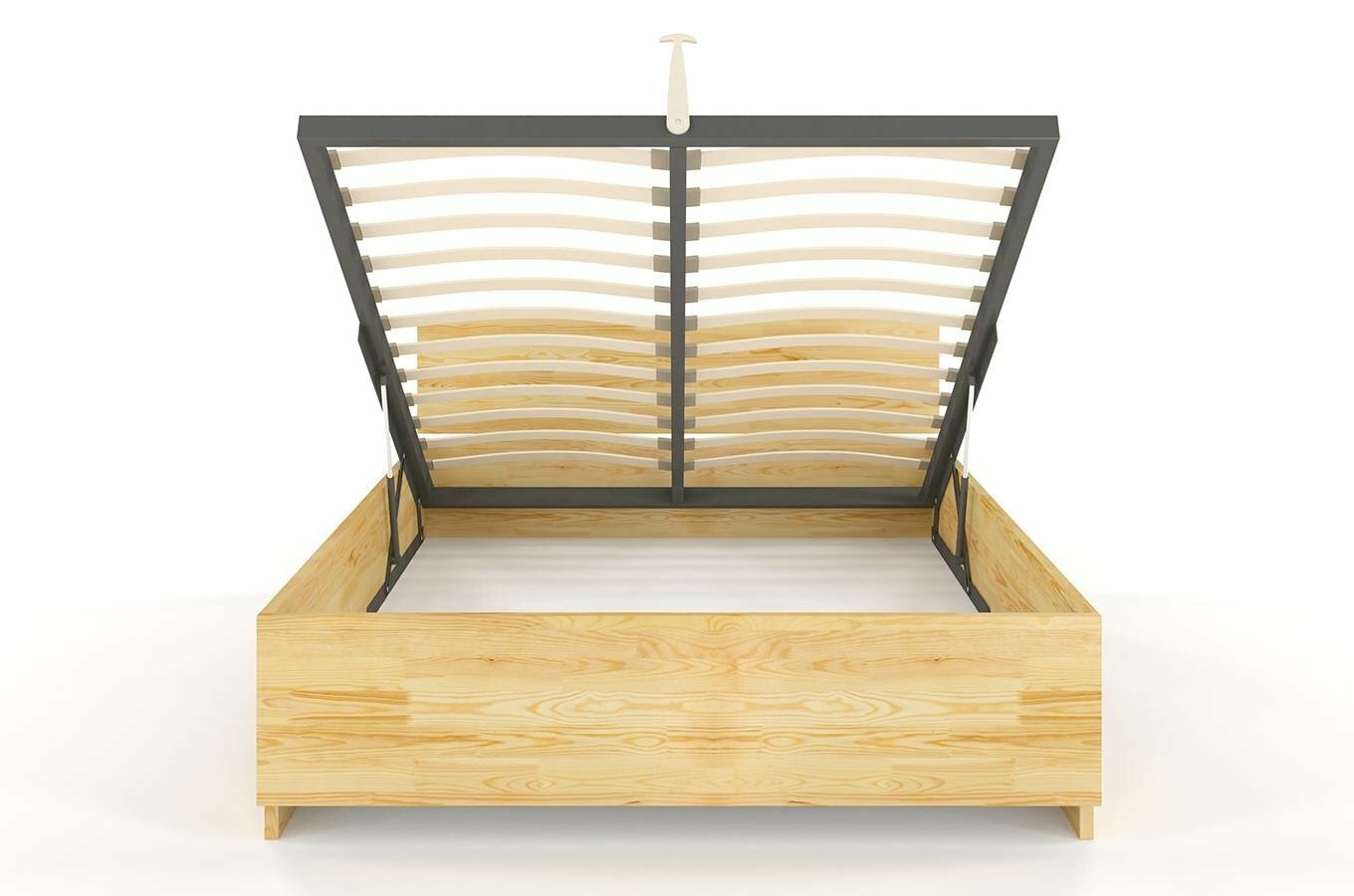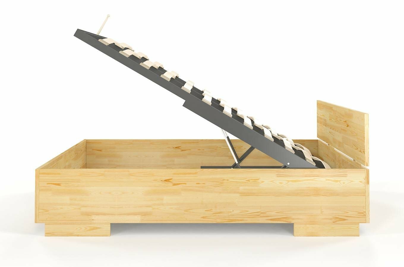 Dacă sunteți proprietarul unui apartament mai mic sau pur și simplu aveți nevoie de mai mult spațiu de depozitare vă veți bucura de patul Larsos High BC. Patul simplu de pin pe lângă un somn de calitate aduce în dormitorul dvs., spațiu de depozitare pentru plăpumi, perine sau pentru îmbrăcămintea sezonieră. Patul are înălțimea de 69 de cm deci este mai mare decât modelul standard. Datorită acestui lucru vă va fii mai ușor să coborâți din pat. . Patul Bergnam High cu spațiu de depozitare are o construcție fermă și stabilă, creată prin conectarea pieselor individuale cu șuruburi. Astfel puteți dormi liniștiți, construcția patului va rezista mulți ani. Forța și stabilitatea sunt asigurate și de așa-numitul "al cincilea picior" care are formă de "T". În partea din față și din spate și patului este atașată o bârnă orizontală, iar prisma verticală susține întregul pat. Ca suport pentru saltele, se utilizează un grilaj din lemn, care consolidează, de asemenea, întreaga structură. Patul are un grilaj de tip lamelar reglabil care se deschide din față. Stabilitatea este oferită de construcția din metal și grilaj cu șipci lamelare de o densitate suficientă. Grilajul este realizat din 14 lamele cu o distanță de 6-10 cm între ele. Spațiul de depozitare este format dintr-o structură metalică cu grinzi atașate - grilaj pentru saltea. Partea inferioară și compartimentului de depozitare este realizată dintr-o placă care înainte de cădere sunt blocate cu bare de lemn. Adâncimea spațiului de depozitare este aproximativ 15 cm, iar în mijlocul grilajului cam de 10 cm. Patul de pin Larsos High este construit din plăci lipite pe lungime. Pe partea exterioară și patului există un număr minim de noduri, datorită "micro mâner". Patul este rezistent la zgârieturi deoarece este tratat cu două straturi de lac dur. Lacurile utilizate au toate certificatele și atestatele necesare.