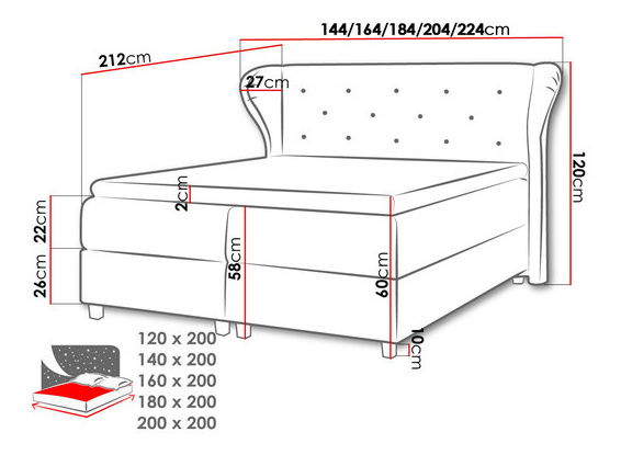 160 / 200 - 76,5 cm