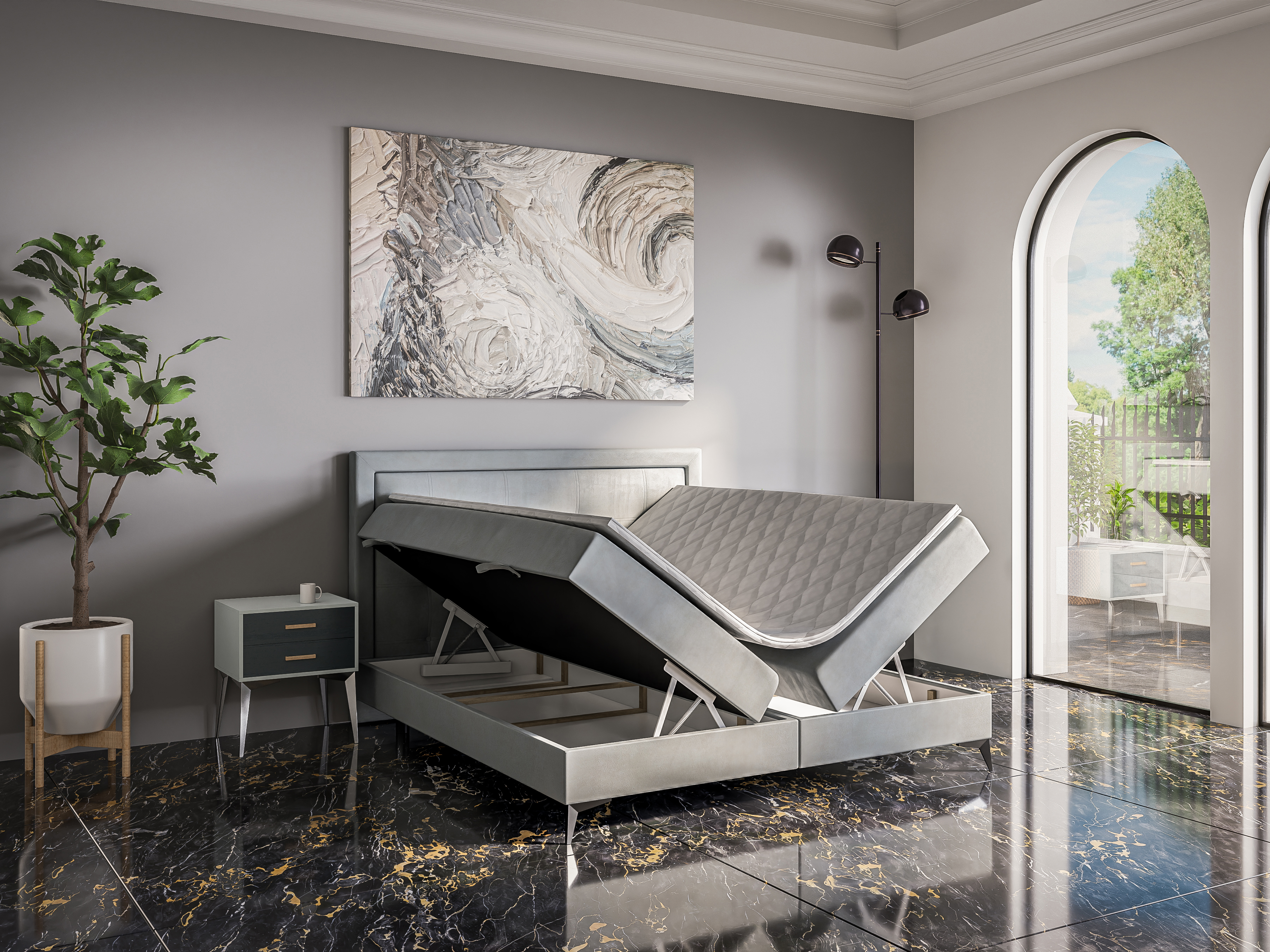 Pat matrimonial Boxspring 140 cm Hygga (albastru deschis) (cu saltea și sp. depozitare)