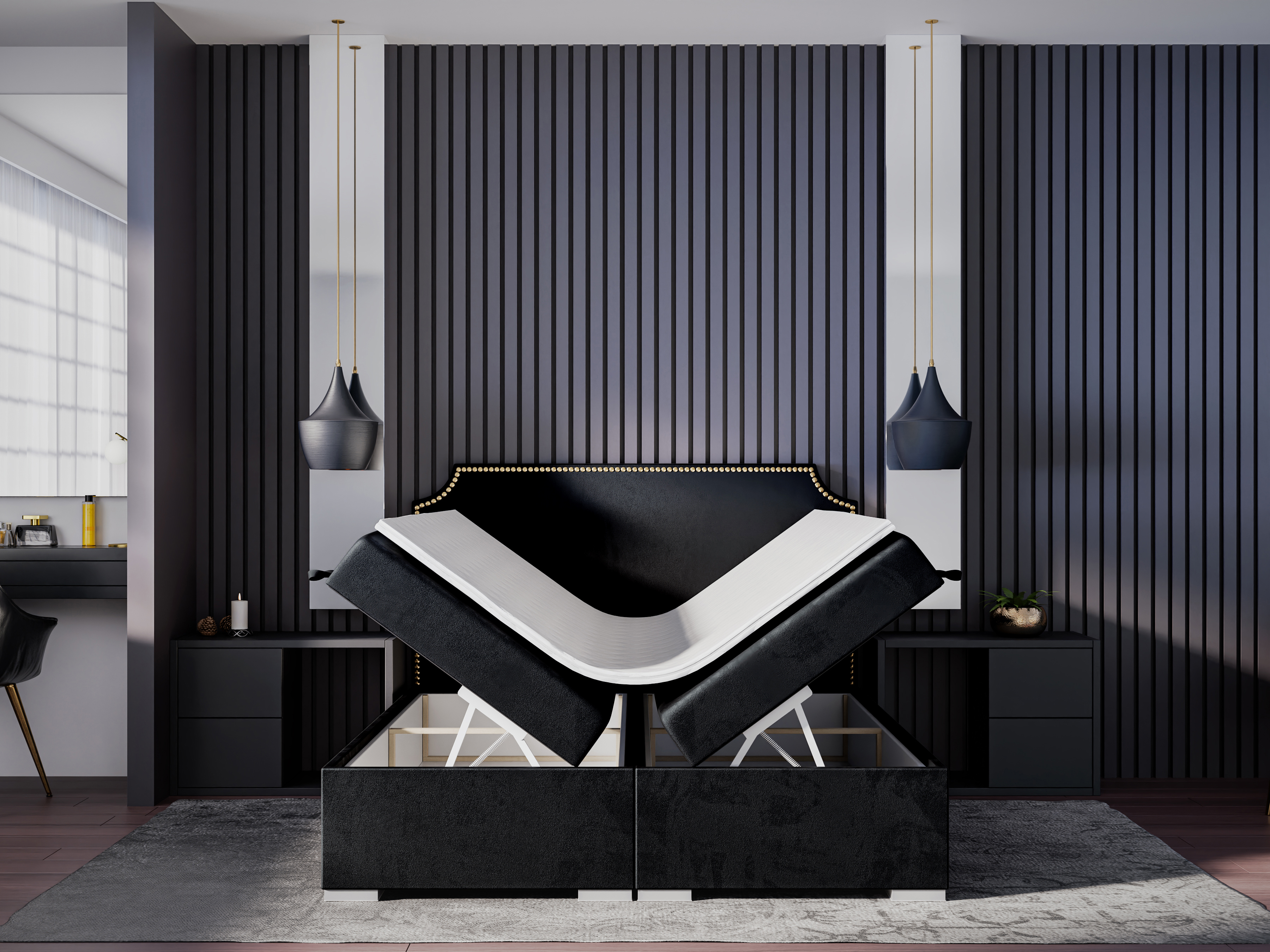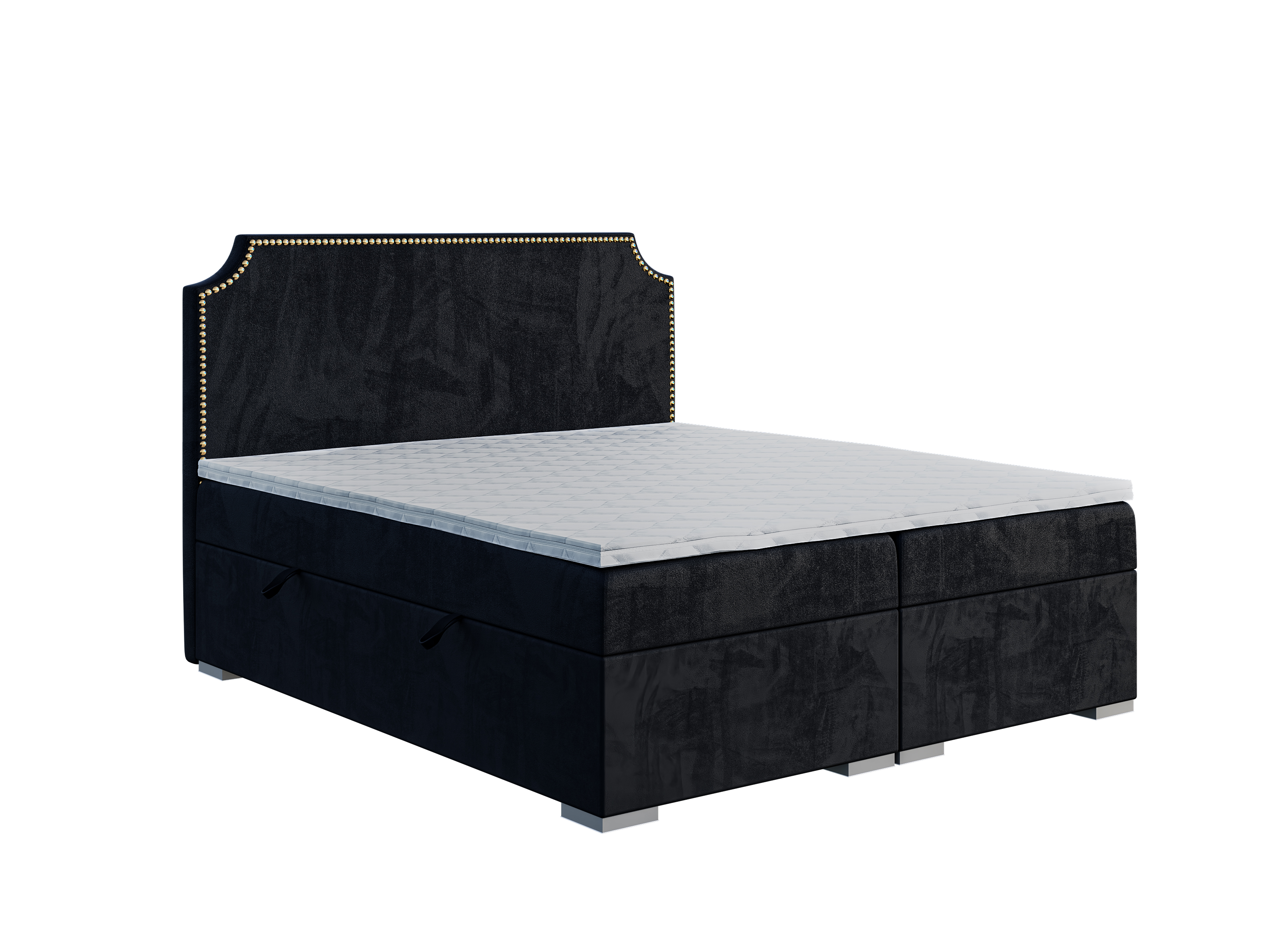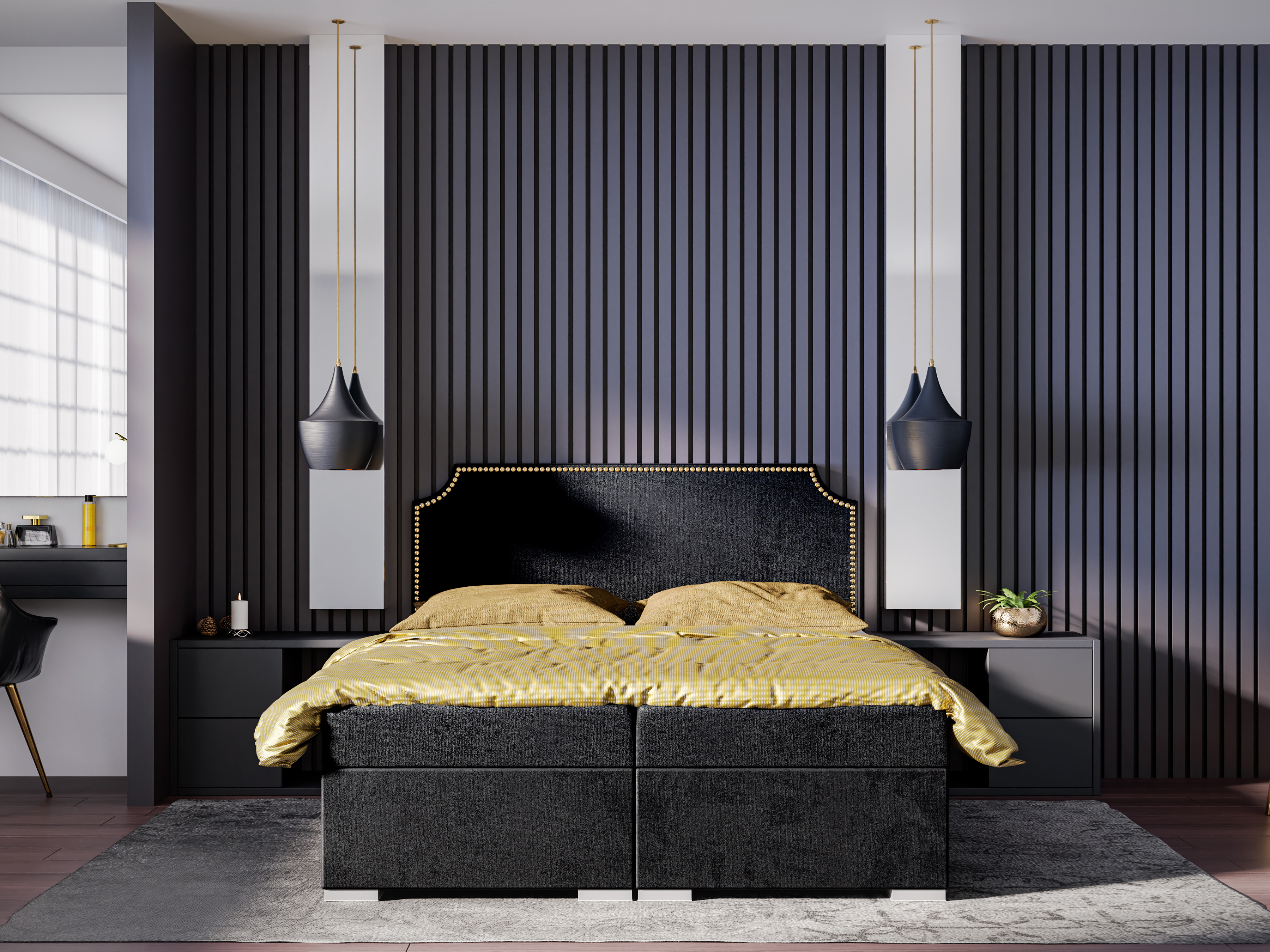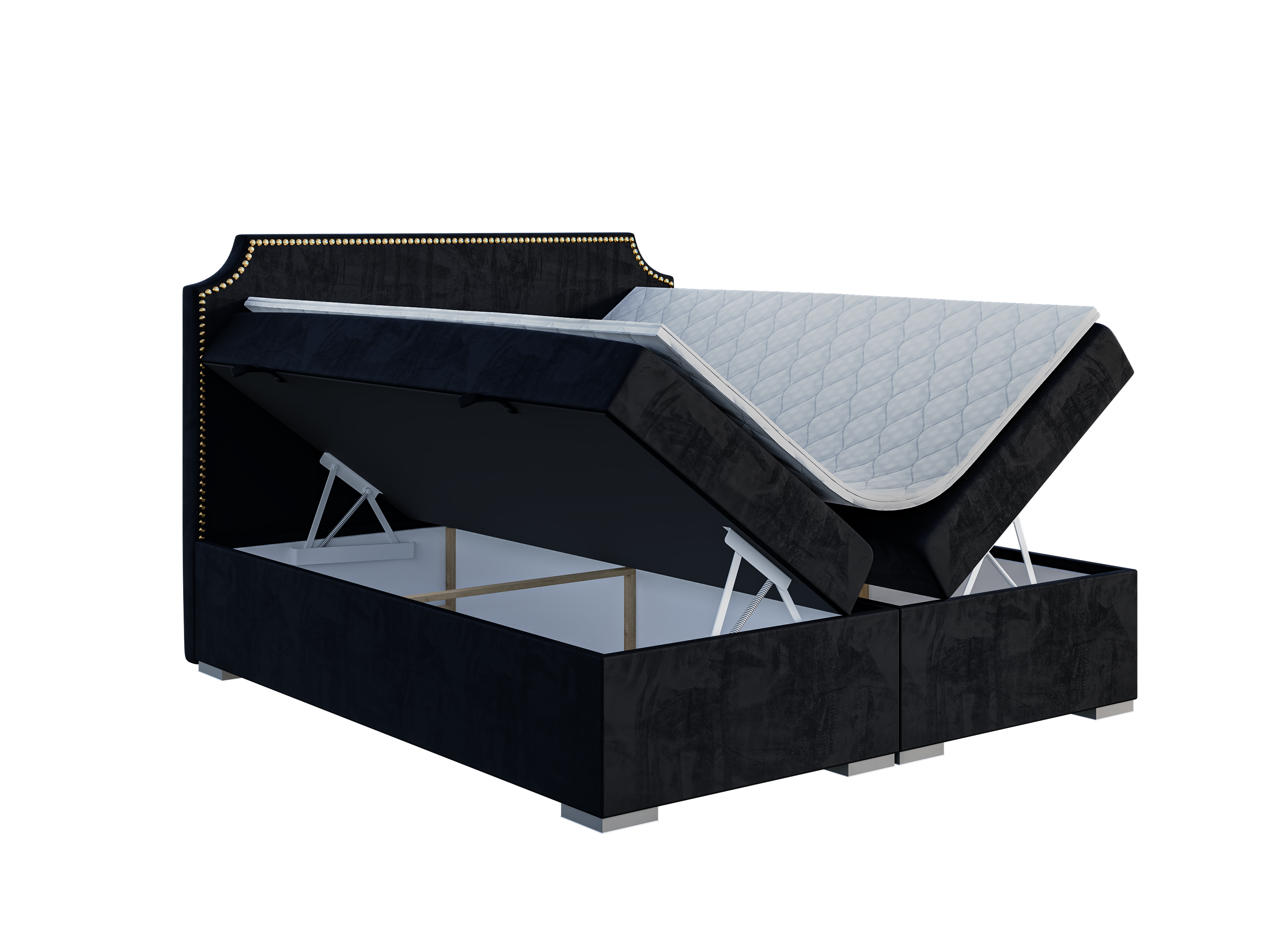Pat matrimonial Boxspring 140 cm Lupin (Negru) (cu saltea și sp. depozitare)