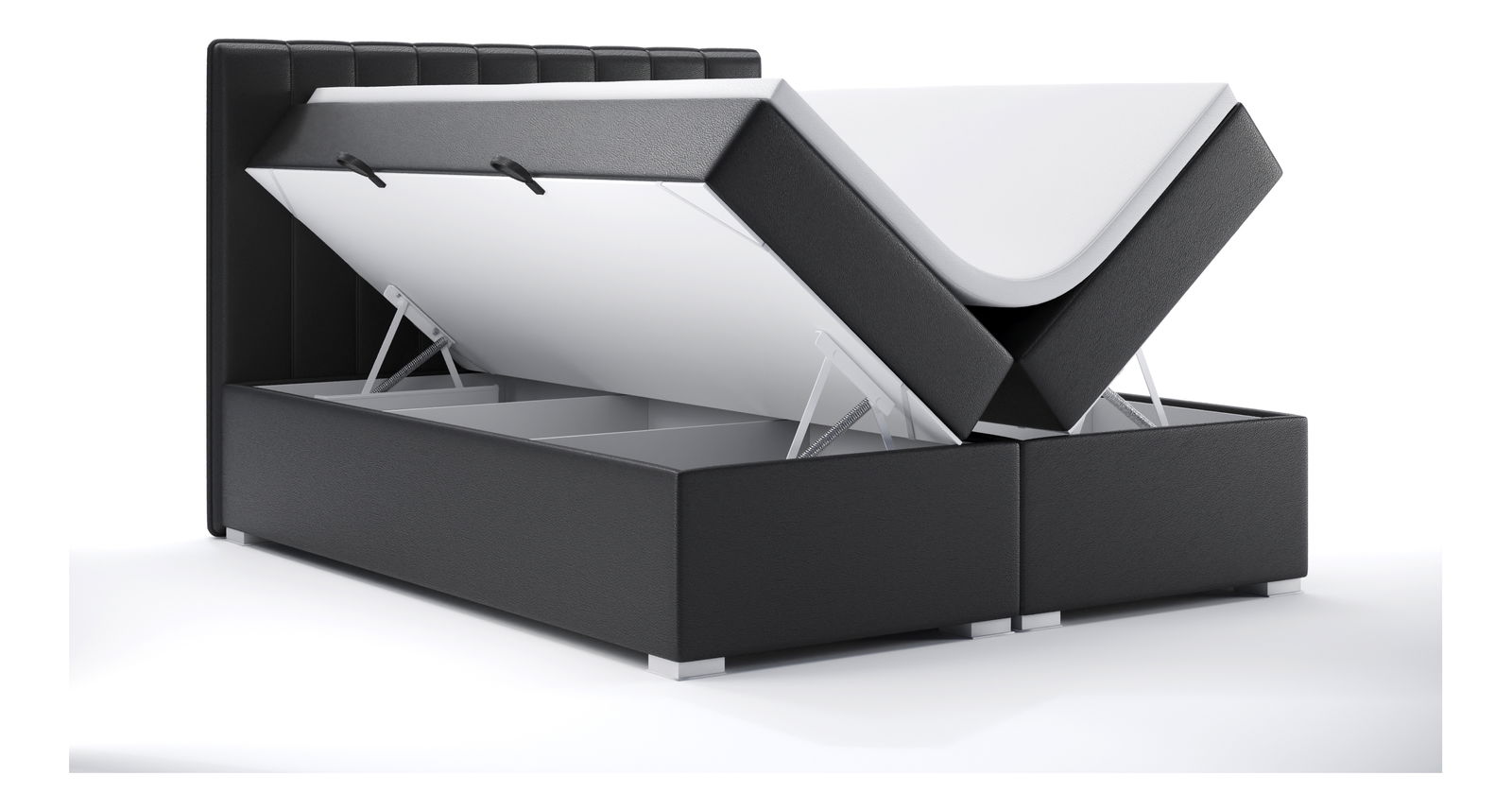 Pat matrimonial Boxspring 140 cm Ranaly (Negru piele ecologică) (cu sp. depozitare)