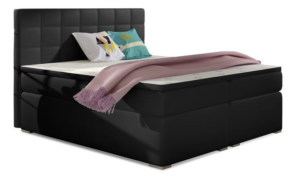 Pat matrimonial Boxspring 160 cm Abbie (negru Soft 11) (cu saltele)