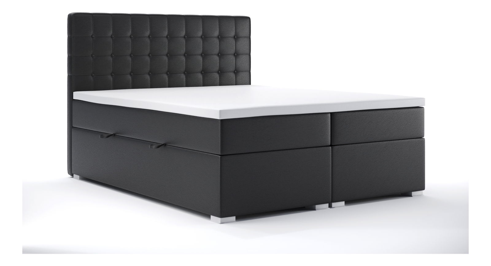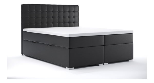 Pat matrimonial Boxspring 160 cm Candy (Negru piele ecologică) (cu sp. depozitare)