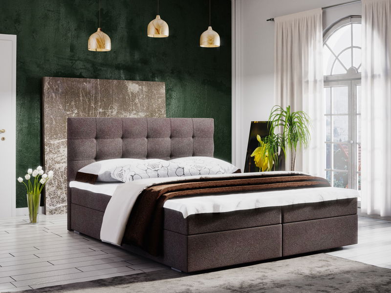 Pat matrimonial Boxspring 160 cm Fade 2 (maro închis) ( cu saltea și sp. depozitare)